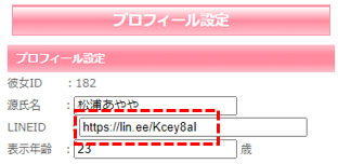 上(↑)のURLをコピーして[アイリス管理画面]⇒[プロフィール設定画面]のLINEIDに設定します。